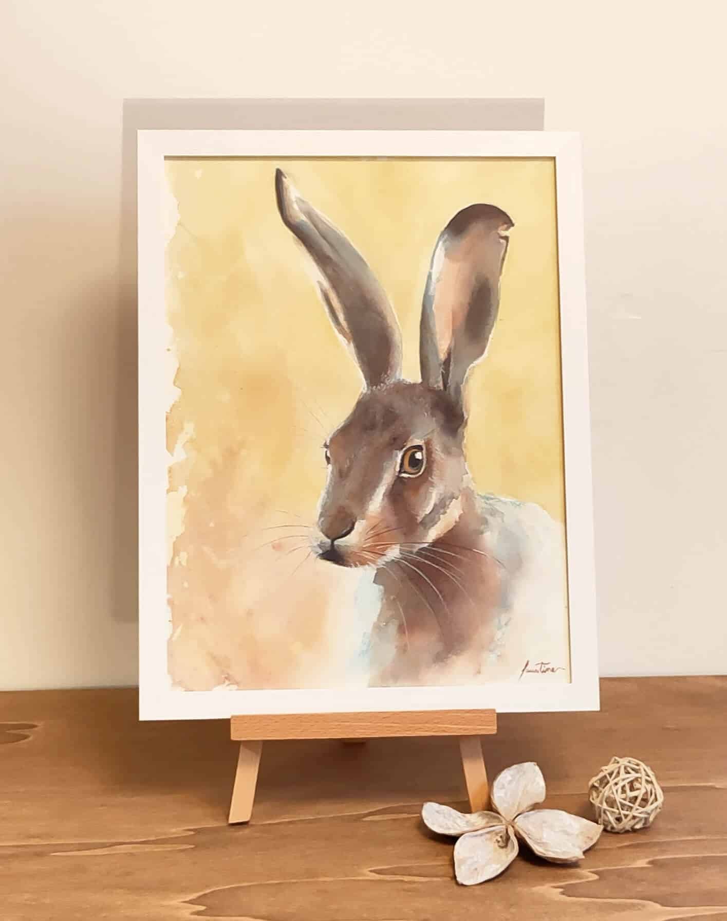 Aquarelle « le Lièvre » au format 30 x 40 cm