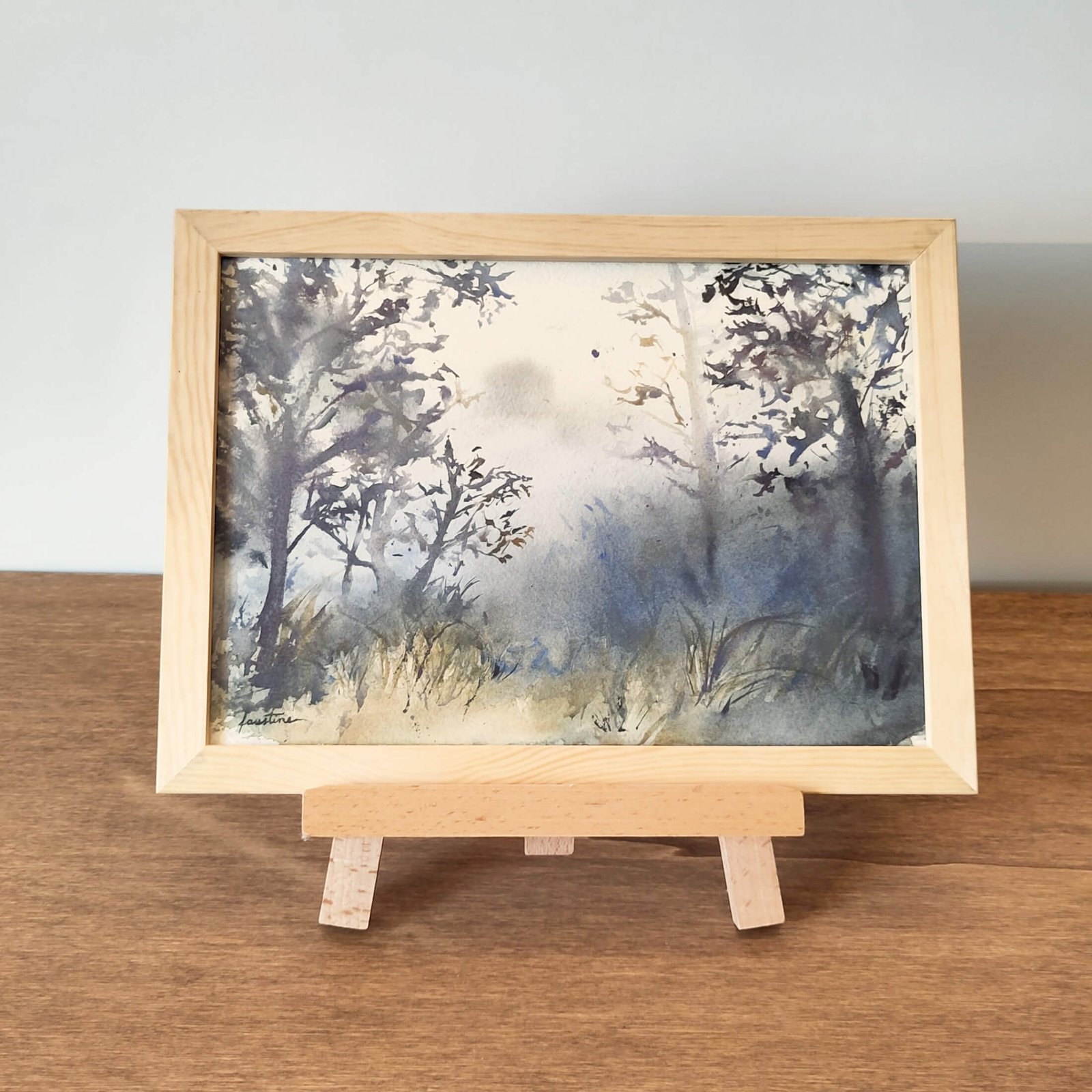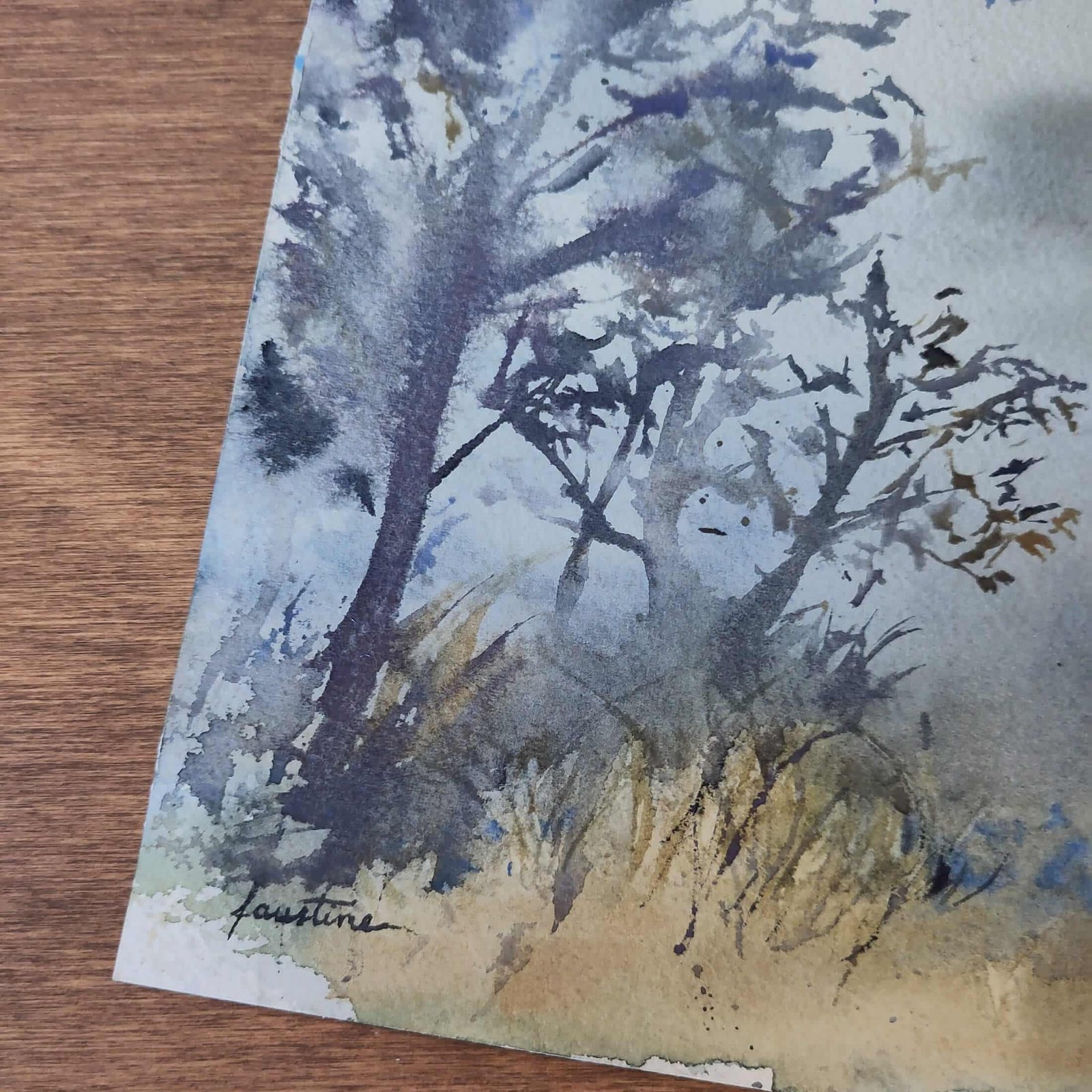 Aquarelle « Arbres au Crépuscule » au format 29,7 x 21 cm