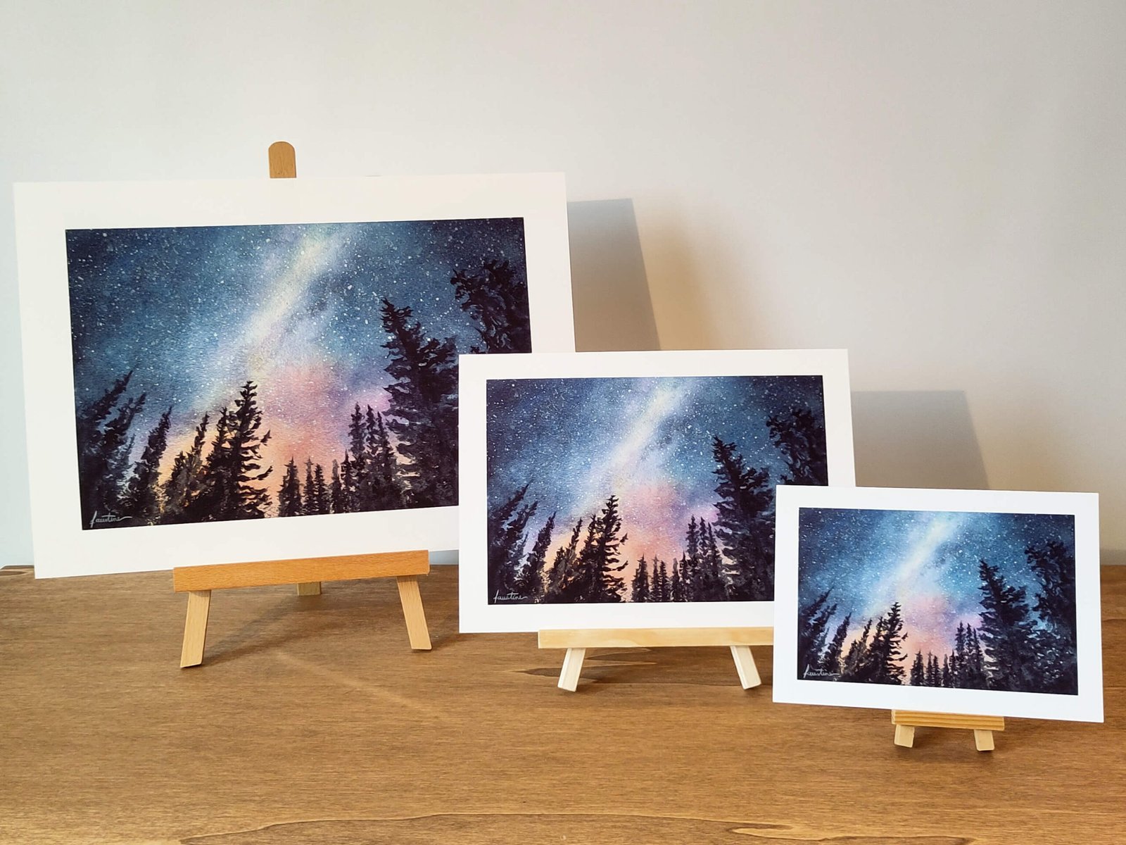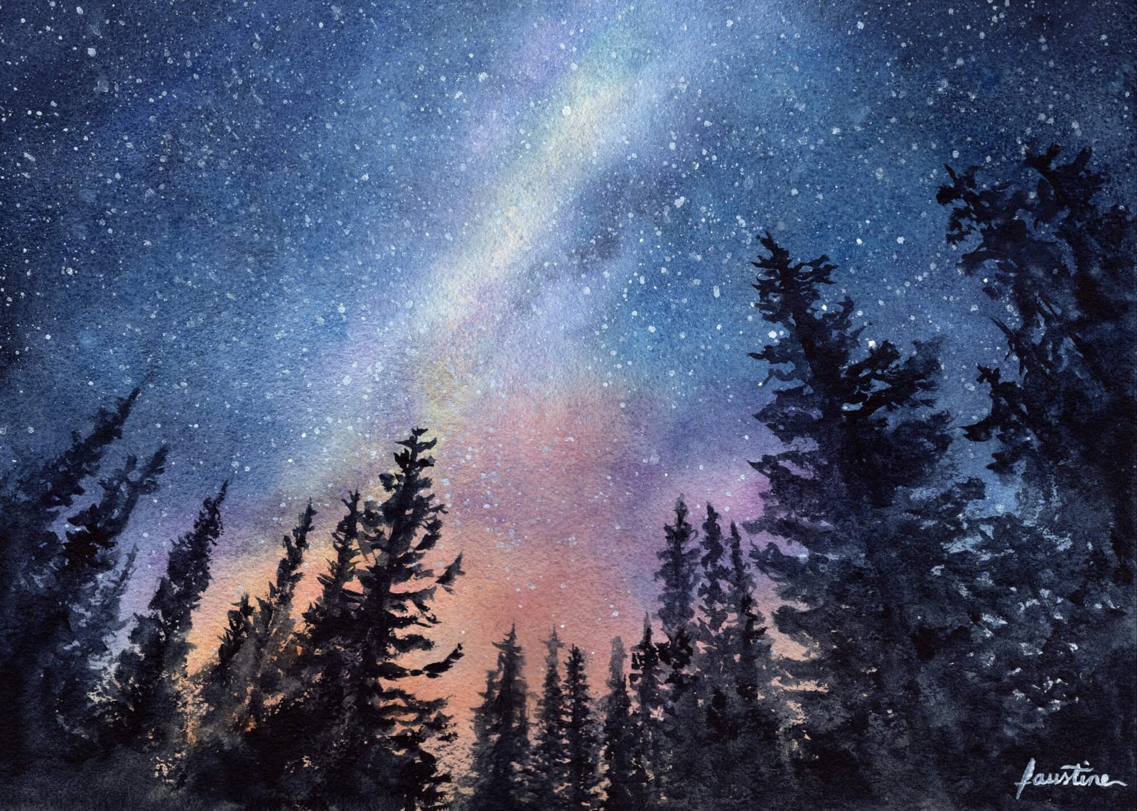 Cette impression de l’aquarelle « Aurores Boréales n°2 », avec ses beaux ciels de nuit aux couleurs contrastées et chatoyantes est idéale pour décorer votre intérieur ! L’aquarelle originale est disponible ici.