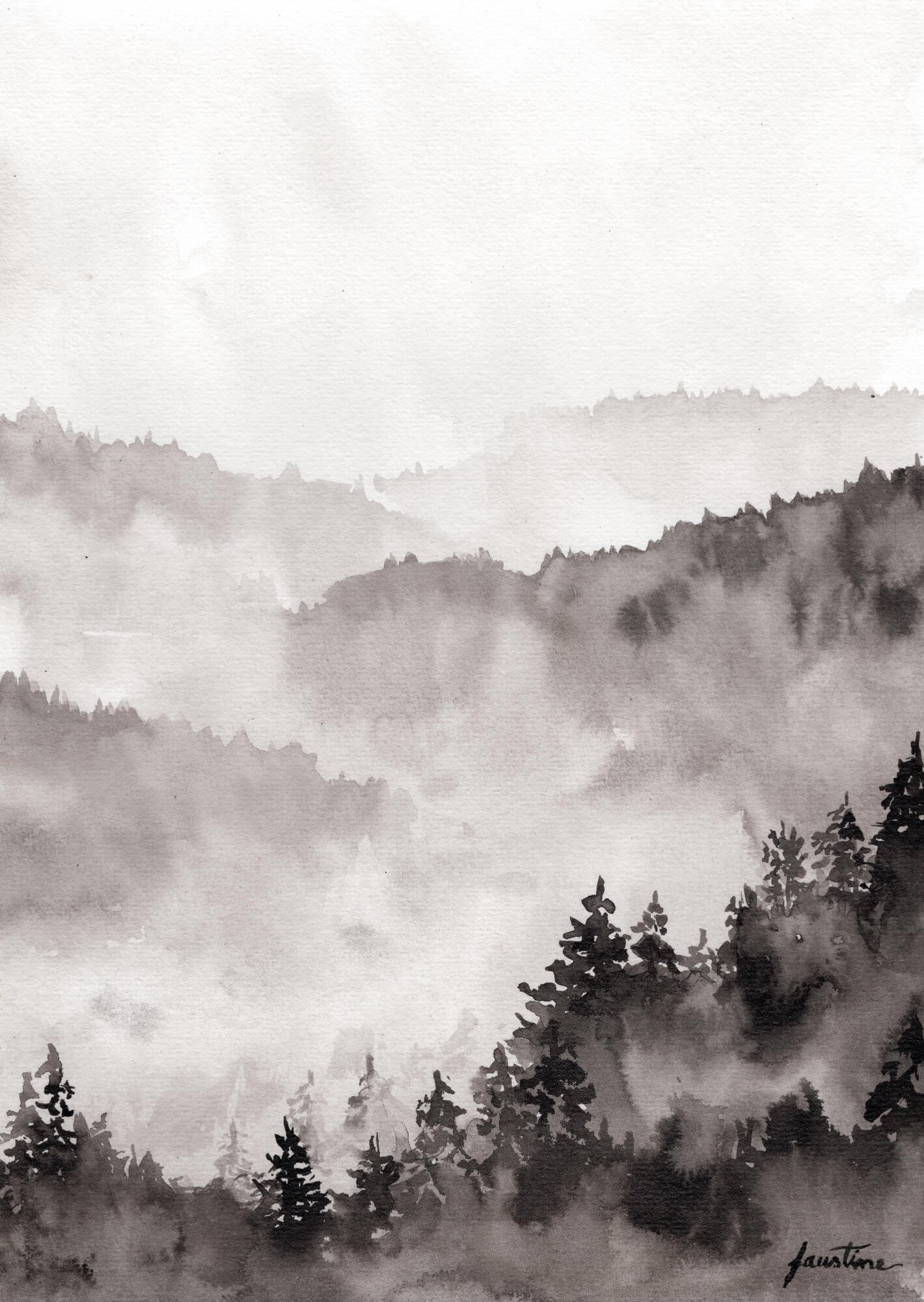 Cette impression du paysage onirique de forêt dans la brume est idéale pour décorer votre intérieur tout en sobriété ! L’œuvre originale est disponible ici.