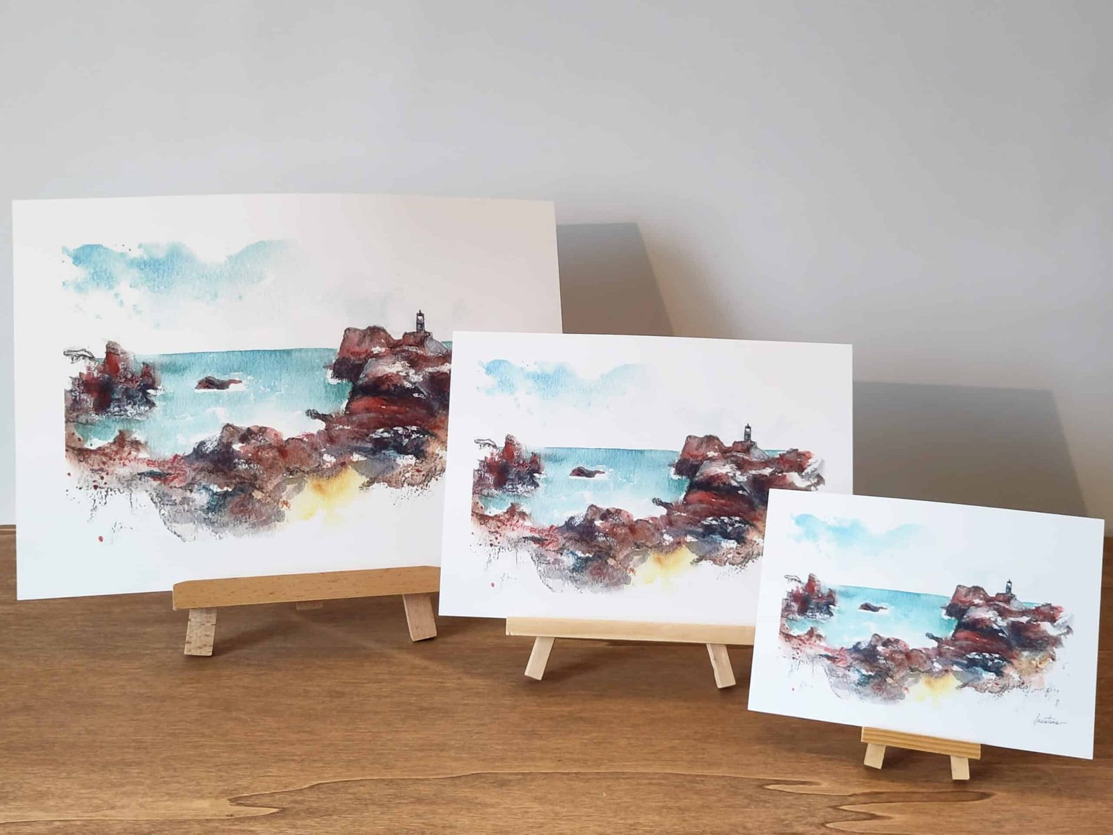 Cette impression d’une aquarelle réalisée à l’île de Bréhat est idéale pour amener la côte, ses couleurs et son air iodé, dans votre intérieur ! L’aquarelle originale a remporté en 2025 la 2ème place à un concours national Sennelier, marque que j’aime beaucoup. Elle est également disponible en carte postale ici.