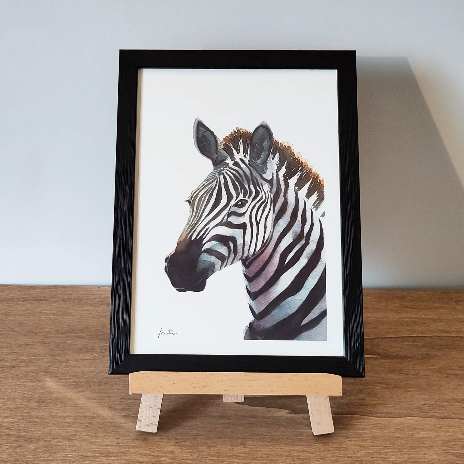 L’impression de ce zèbre est issue de l’aquarelle originale disponible ici. Si vous aussi, vous aimez la nature et les animaux sauvages, cette impression est parfaite pour décorer vos murs !