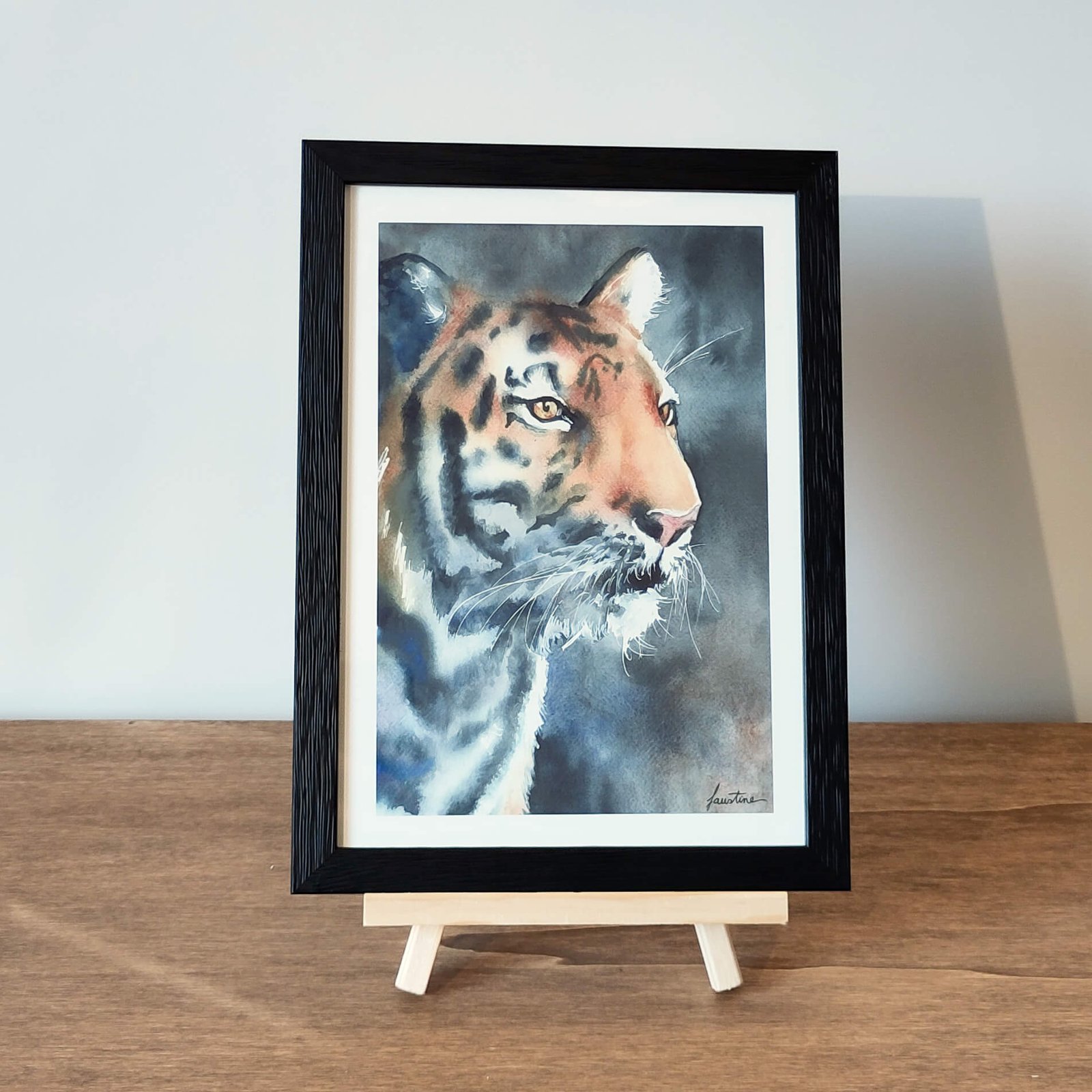 L’impression de ce tigre majestueux à l’œil intelligent réalisé à l’aquarelle est idéale pour décorer votre intérieur. La version originale de ce félin est disponible ici.