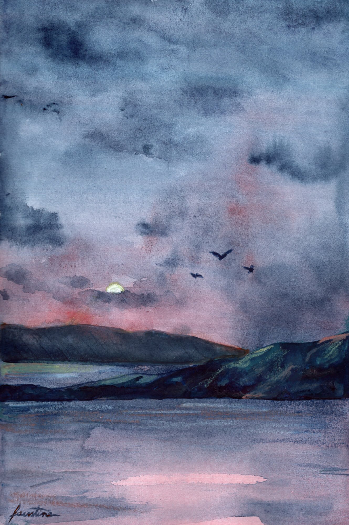 Cette impression d’une aquarelle d’un paysage à la tombée de la nuit est idéale pour décorer l’intérieur de tous les amoureux de la nature !